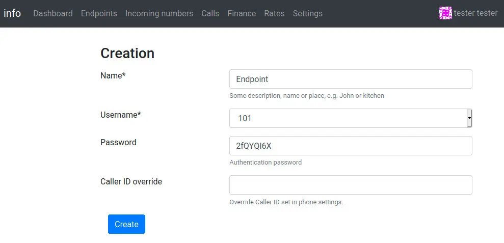 Name = Use any name representing your endpoint like office or softphone or persons name